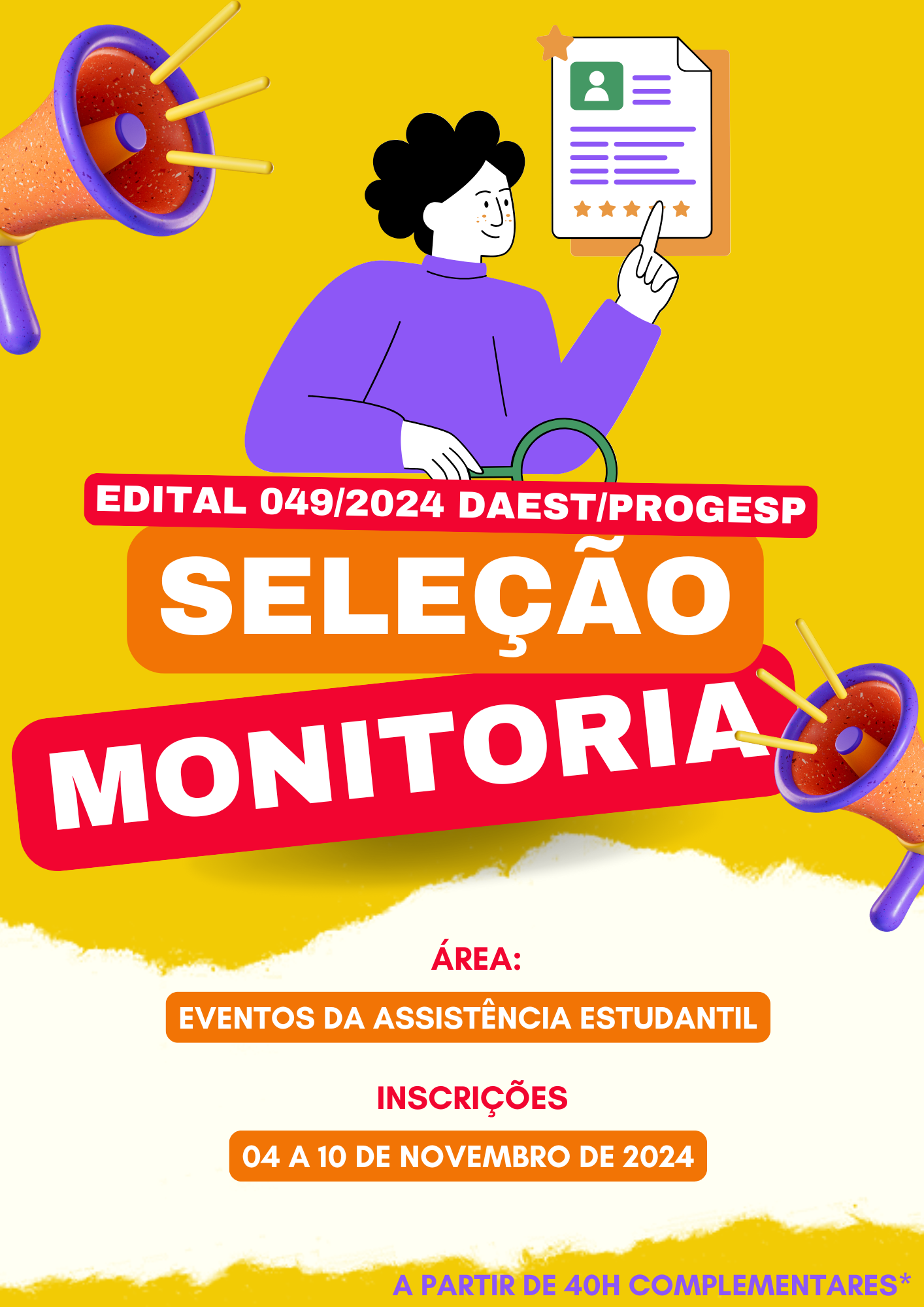 RESULTADO - EDITAL DAEST/PROGESP 049/2024 - SELEÇÃO DE MONITORIA PARA EVENTOS DE ASSISTÊNCIA ESTUDANTIL
