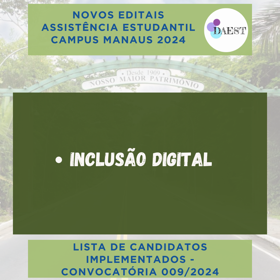 DESB (PROAE) DIVULGA LISTA DE CANDIDATOS IMPLEMENTADOS - AUXÍLIO INCLUSÃO DIGITAL (EDITAL 014/2024 - MANAUS) - CONVOCATÓRIA 009/2024