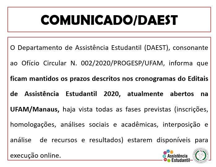 LIVE DAEST SOBRE INSCRIÇÕES NOS AUXÍLIOS ESTUDANTIS 2020