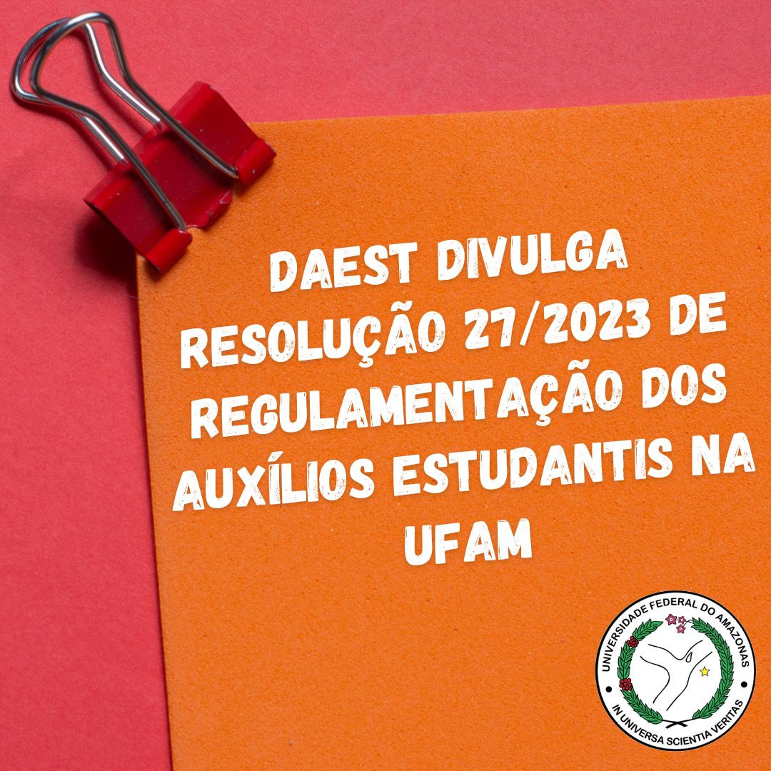 DAEST divulga resolução 27/2023 de regulamentação dos auxílios estudantis na UFAM.