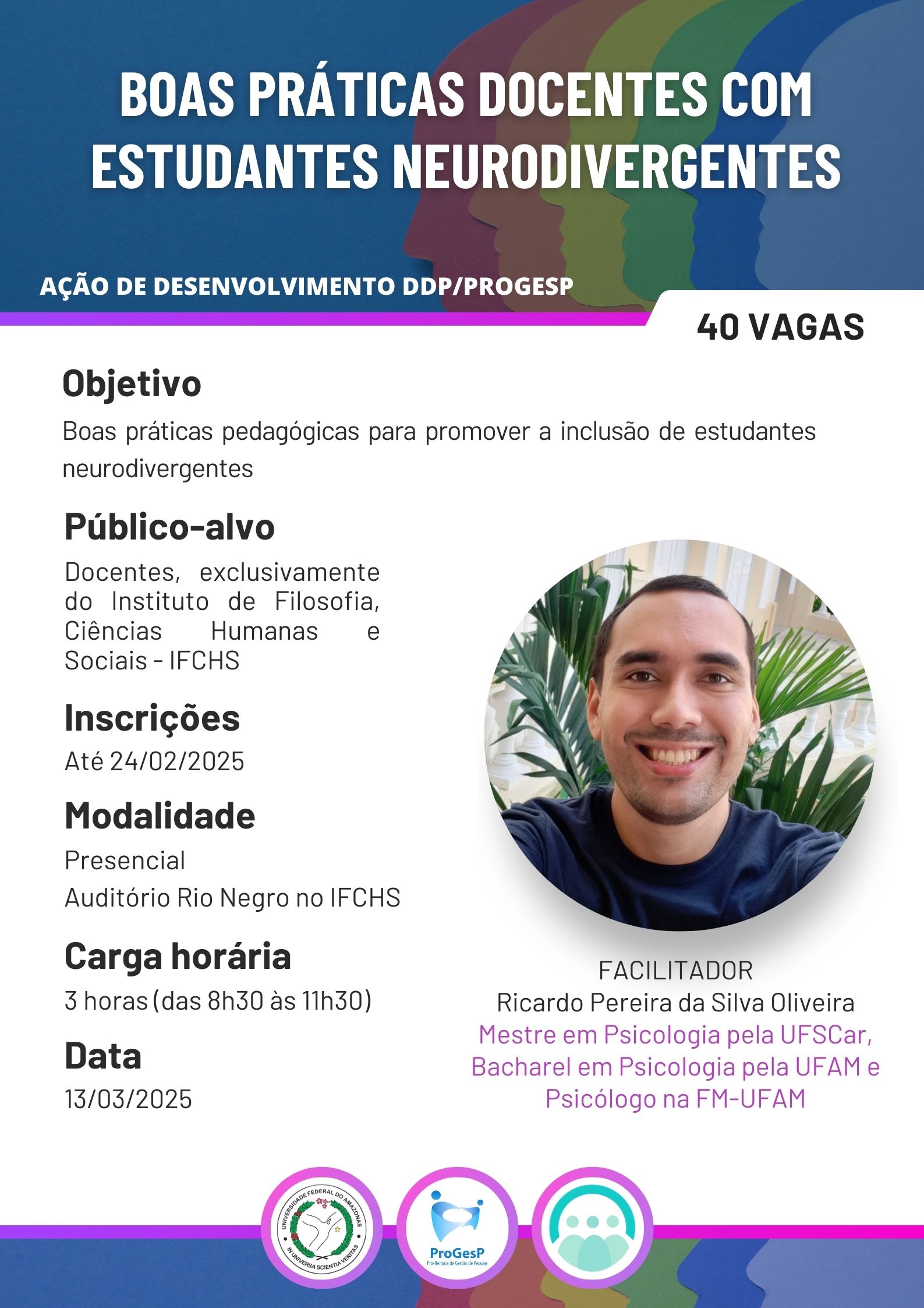 O Departamento de Desenvolvimento de Pessoas da PROGESP divulga o Minicurso Boas Práticas Docentes com Estudantes Neurodivergentes.